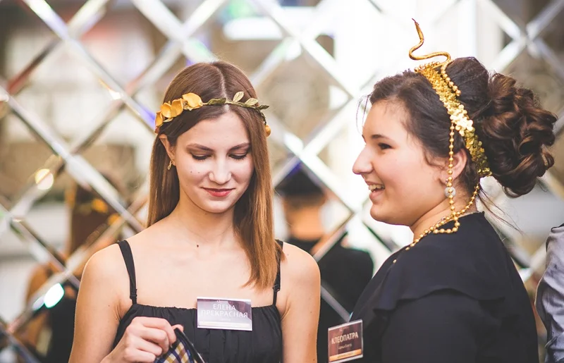 Квест на выпускной «Ночь в музее»: Екатерина Великая заключает союз с Клеопатрой за обеденным столом, но в её глазах мелькает искорка подозрения — какие тайны скрывает эта дама в своих пирамидах?
