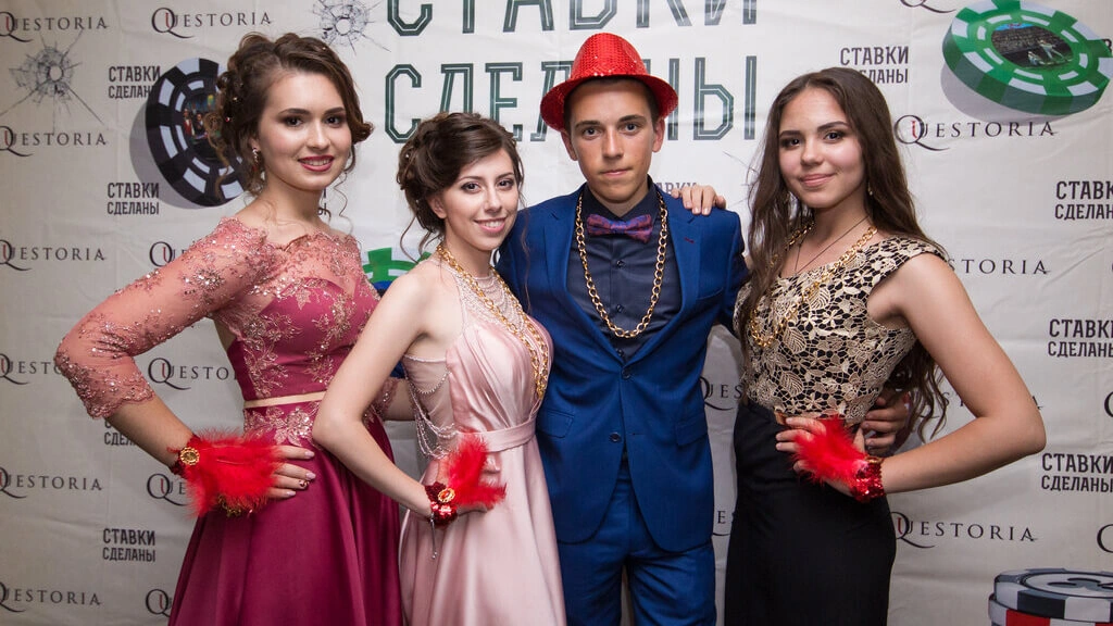 Устроить выпускной с квесторией можно прямо в школе, в нашем партнерском ресторане, в парке, за городом, даже в музее! Или подберем любой другой вариант.
